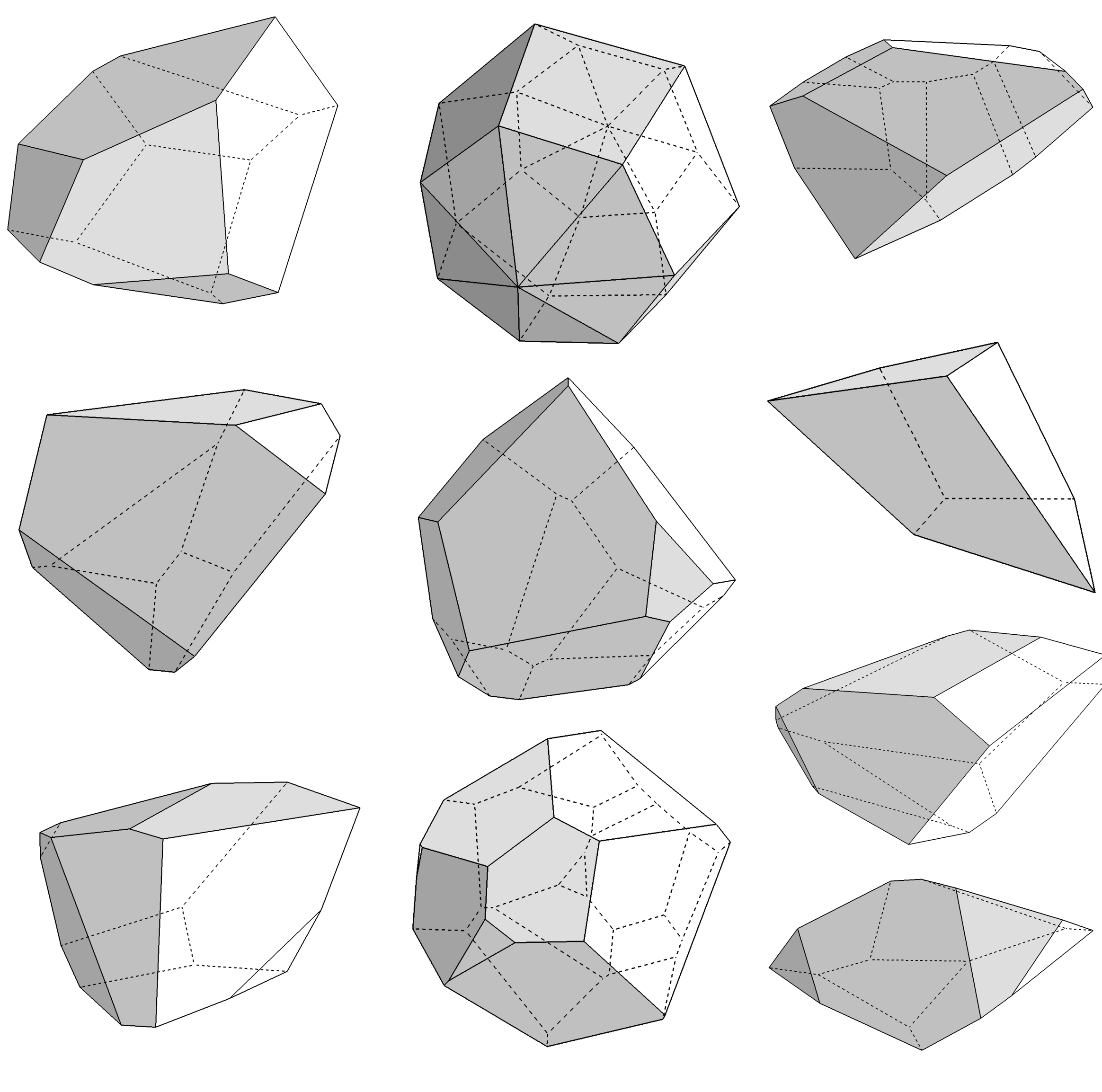 A subset of the fifty convex polyhedra reconstructed